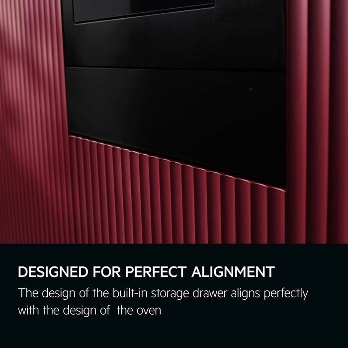 The design of the built-in storage drawer is designed to align perfectly with the design of the oven while keeping plates, glasses, and trays at hand and out of sight.