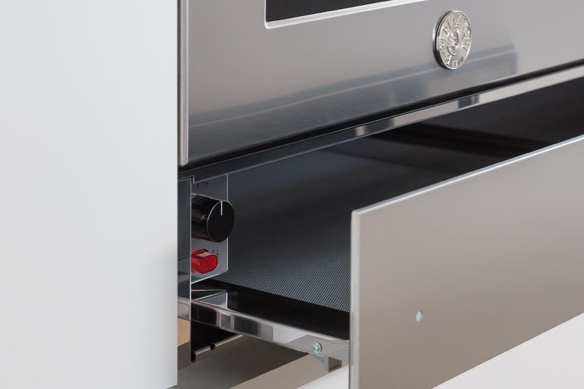 The Professional Series 60x15 warming drawer has a large 25kg capacity. The large drawer space heats to a consistent temperature range between 30-85°C to keep dishes at serving temperature. The drawer has a soft- motion push/pull action with full extension glides. Available in Stainless Steel and Carbonio.