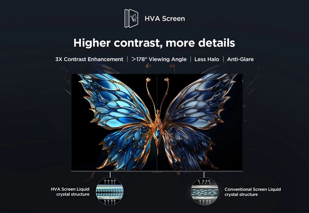 Designed with an advanced HVA (Hi-Performance Vertical Alignment) screen, this TV represents the next generation of VA displays, ensuring sharp contrast and enhanced picture clarity. Its AiPQ Processor, powered by TCL’s advanced algorithm, processes content with stable and high-quality 4K resolution, making your favourite movies, shows, and games come to life.