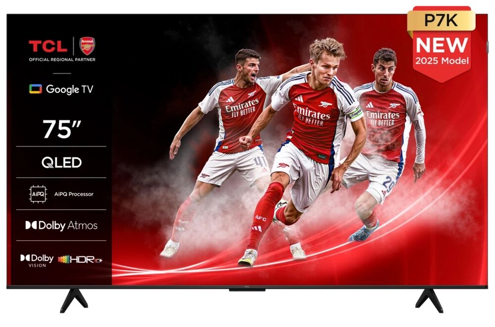 The TCL 75P7K 75” QLED Smart TV combines cutting-edge technology with exceptional performance to redefine home entertainment. Featuring QLED technology, it delivers stunning visuals with genuine colours made from over a billion hues. The Direct LED backlight enhances image quality and provides a superior viewing experience while maintaining energy efficiency.
