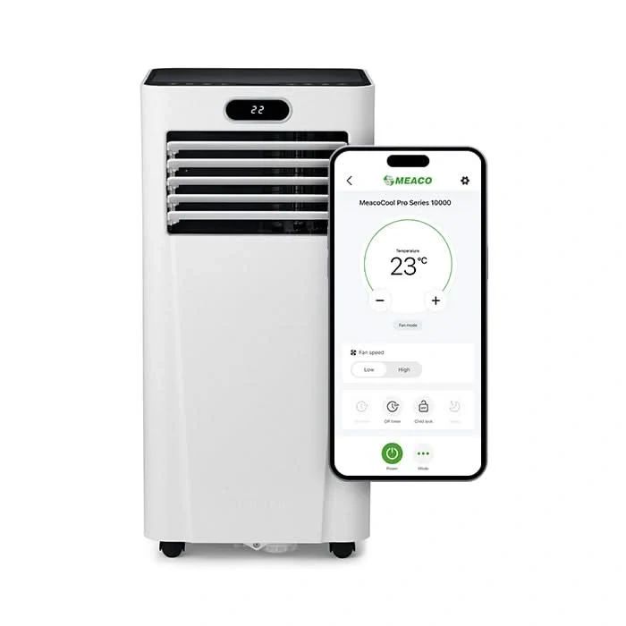 Powerful, energy-efficient and now compatible with our App (new for 2024). Keep cool with the latest Meaco cooling portable air conditioner for homes, offices, gyms and conservatories.
