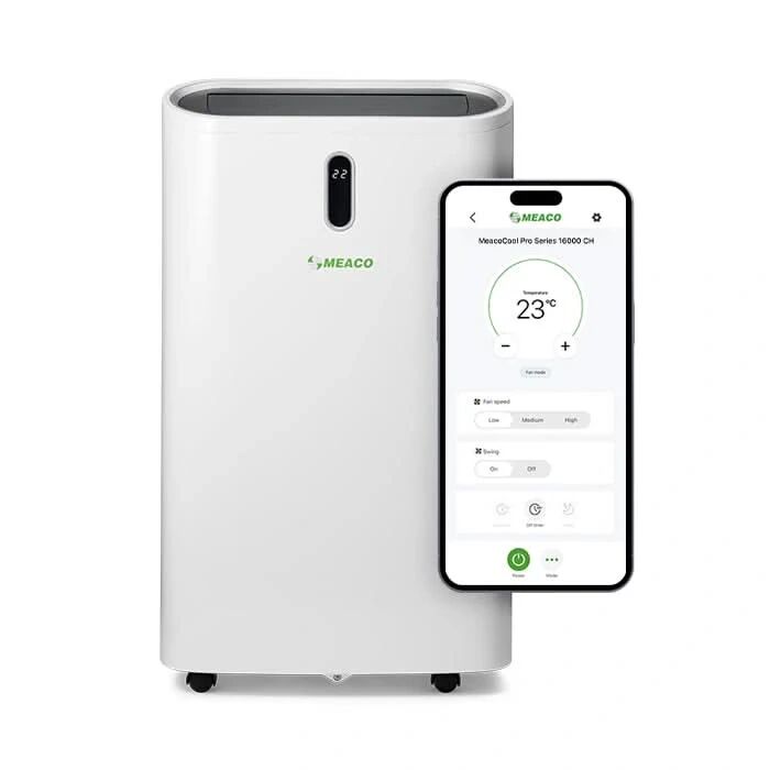Powerful, energy-efficient and now compatible with our App (new for 2024).  Keep cool with the latest MeacoCool portable air conditioner with Heat Mode. It is perfect for larger homes, offices, gyms and conservatories.