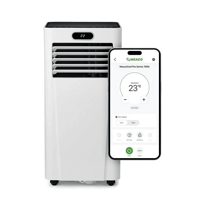 Powerful, energy-efficient and now compatible with our App (new for 2024). Keep cool with the latest Meaco cooling portable air conditioner for homes, offices, gyms and conservatories.