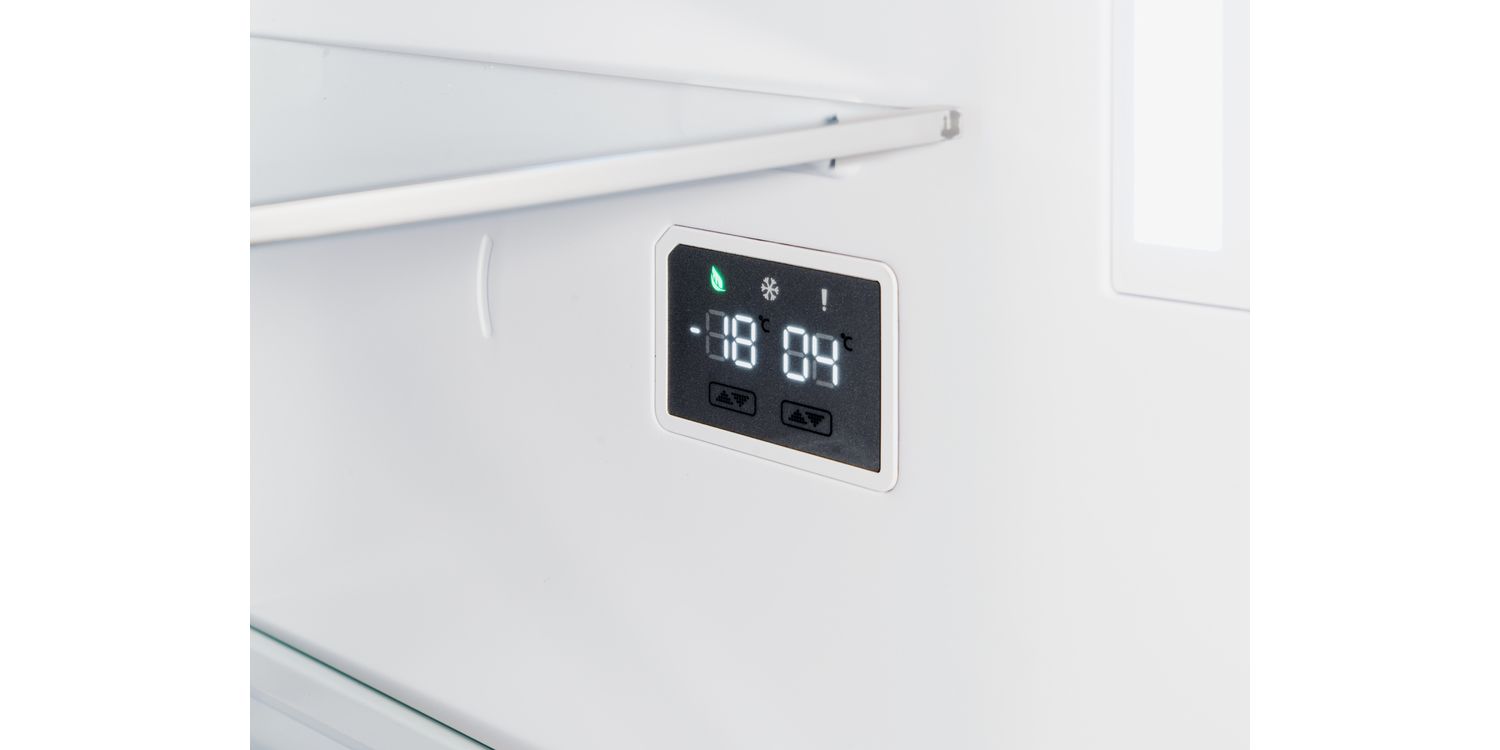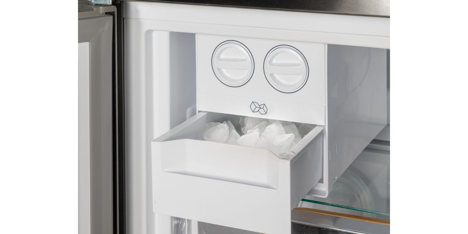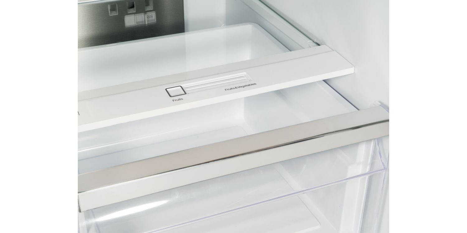 The internal configuration of the refrigerated compartment is designed for maximum flexibility with 3 metal trimmed shelves of which 2 height-adjustable, plus 2 drawers: 1 with adjustable humidity + 1 FrescoZero drawer that can be used as a 0°C drawer for meat and fish, or as a crisper with adjustable humidity. Freezer compartment is equipped with 4 drawers that allow easy access, plus 1 sliding tray and 1 stationary shelf below the manual ice maker.