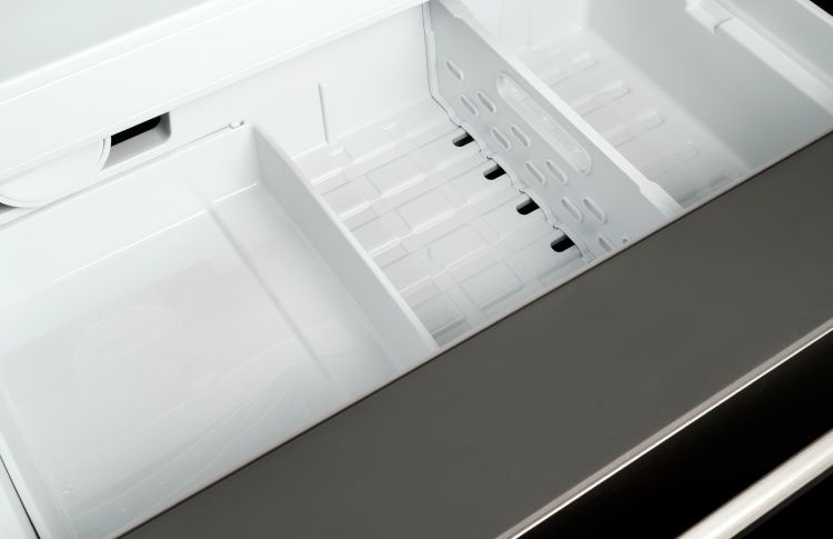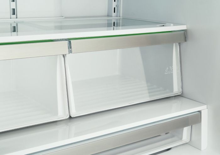 The dual air-cooling system for the separate refrigerator and freezer compartments enables optimal temperature and humidity control for best food preservation. Two freezer drawers allow easy access, and the top compartment holds the the automatic ice-maker tray. The internal configuration of the refrigerated compartment is designed for maximum flexibility with shelves of which 1 fixed and 4 height-adjustable, plus an wide gallon-size storage in the door storage compartment.