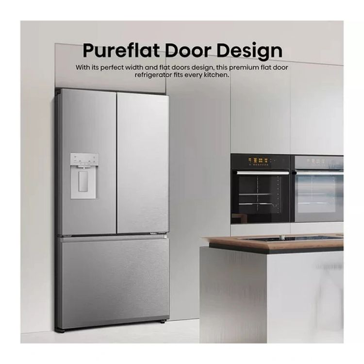 This model is ideal for households valuing convenience and modern functionality. Equipped with a plumbed water dispenser, it guarantees a continuous supply of chilled water without the hassle of refilling. The fast freeze feature swiftly drops freezer temperatures to lock in nutrients and taste, while smooth metal runners allow effortless slide-out of drawers, even at full capacity. Its Pureflat design with inset handles delivers a minimalist look, complemented by improved airflow that maintains even temperatures throughout.