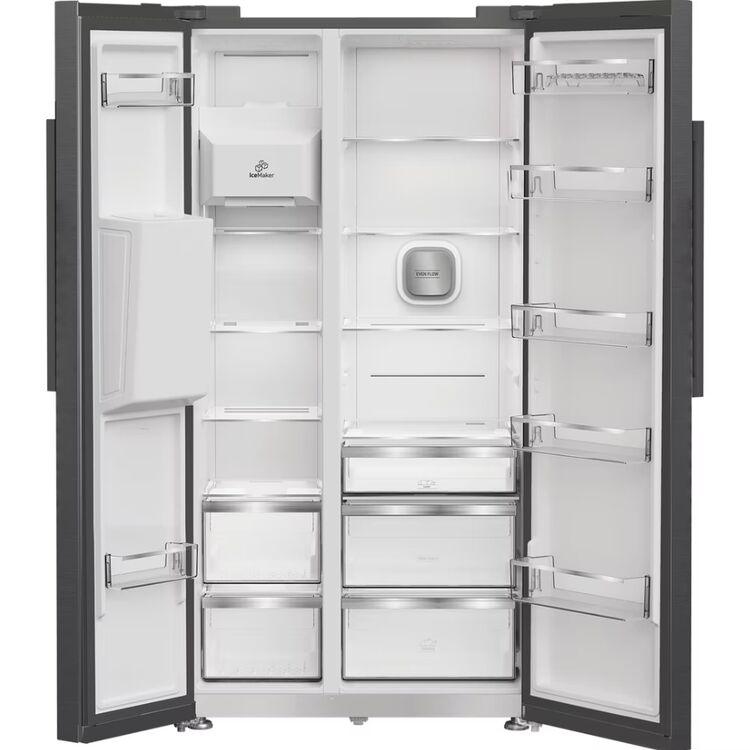 This Hotpoint American Style side-by-side fridge freezer in Inox features thoughtful technology that keeps your food fresh and prevents waste. With an extra-large capacity of 571L, it provides ample space for 32 shopping bags, so you can easily fit all your groceries in. The touch display allows you to refrigerate your food with precision by controlling your appliance at the touch of your fingertips adjustable shelves give added flexibility to accommodate larger items effortlessly.