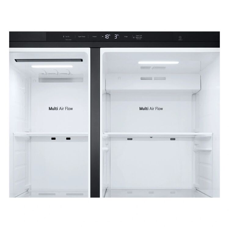Introducing the LG GSLC40EPPE, a sleek matte black 91.3cm 50/50 frost-free American fridge freezer that beautifully merges style with practicality, making it perfect for any modern kitchen. Equipped with Linear Cooling, this appliance maintains temperature fluctuations within ±0.5℃, ensuring your food stays fresher for longer periods. Moreover, the Total No Frost feature cools efficiently through multiple air vents, creating a frost-free environment that eliminates the need for arduous defrosting.