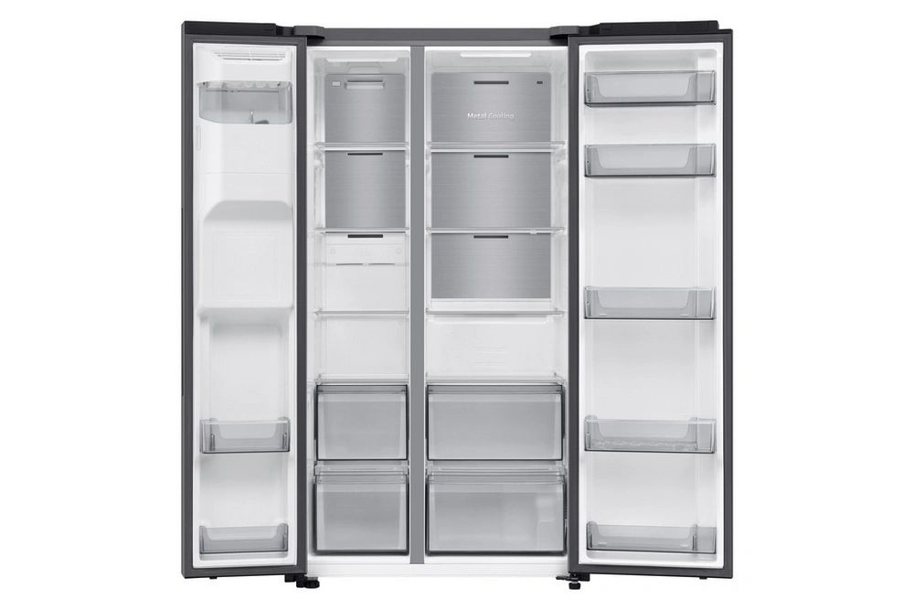 Equipped with AI Energy Mode and an advanced cooling system, it ensures consistent temperatures to keep food fresher for longer while helping you save on energy bills. Smart connectivity lets you monitor and adjust settings via the SmartThings app, while handy features like Power Cool, Power Freeze and a non-plumbed water and ice dispenser bring extra convenience.