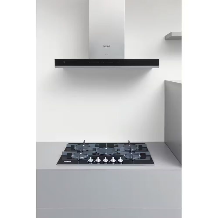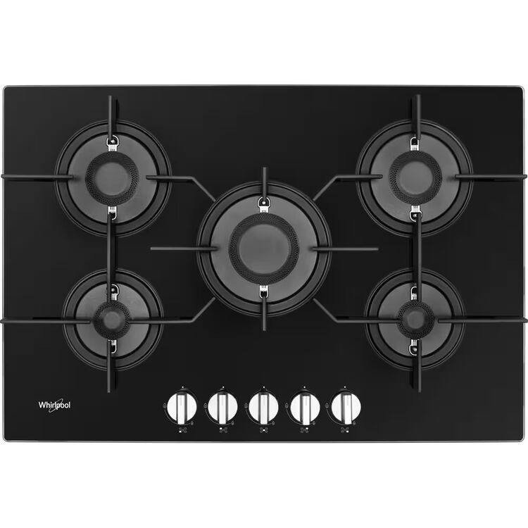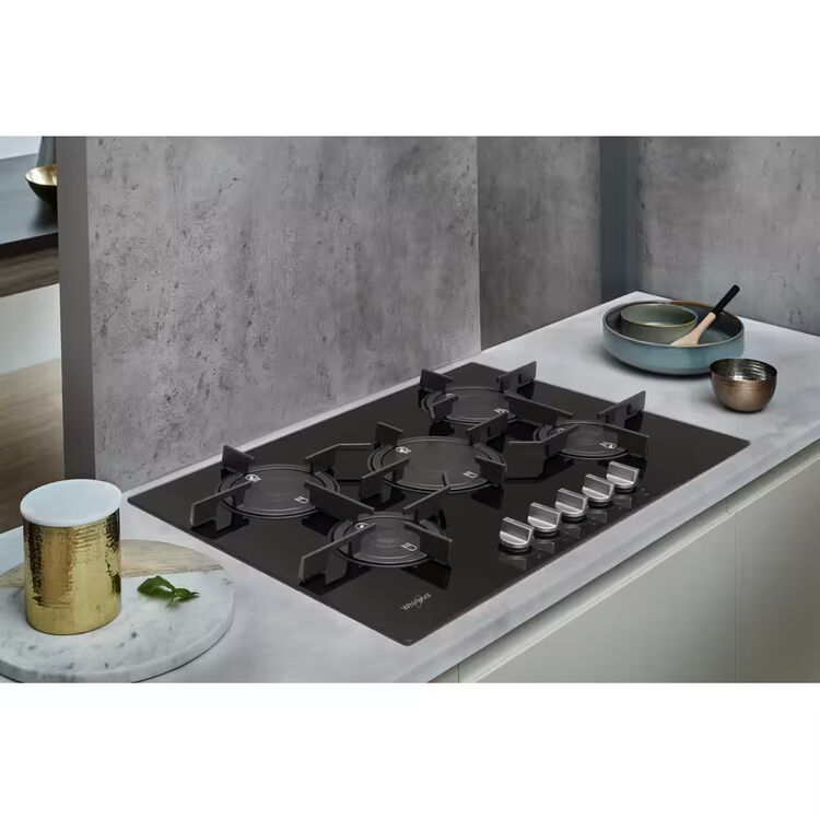 WHIRLPOOL POW75D2NB 75cm 5 Burner Precise Flame Gas on Glass Hob