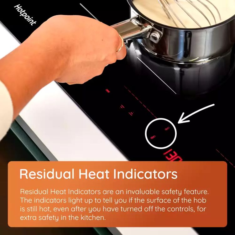 The Residual Heat Indicators light up when the hob is still hot, while the handy Child Lock prevents little hands from adjusting the controls - perfect for a busy family home.
