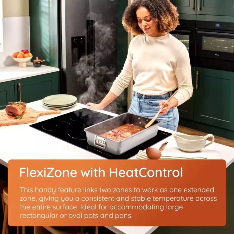 And the dedicated FlexiZone with HeatControl lets you combine two cooking zones, giving you extra flexibility for larger pots along with a consistent and stable temperature across the entire surface.