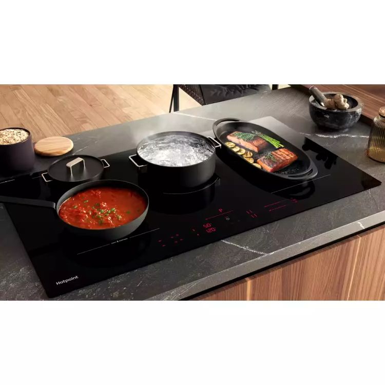 Discover a more enhanced and intuitive way of cooking with this Hotpoint HeatControl 90cm induction hob.