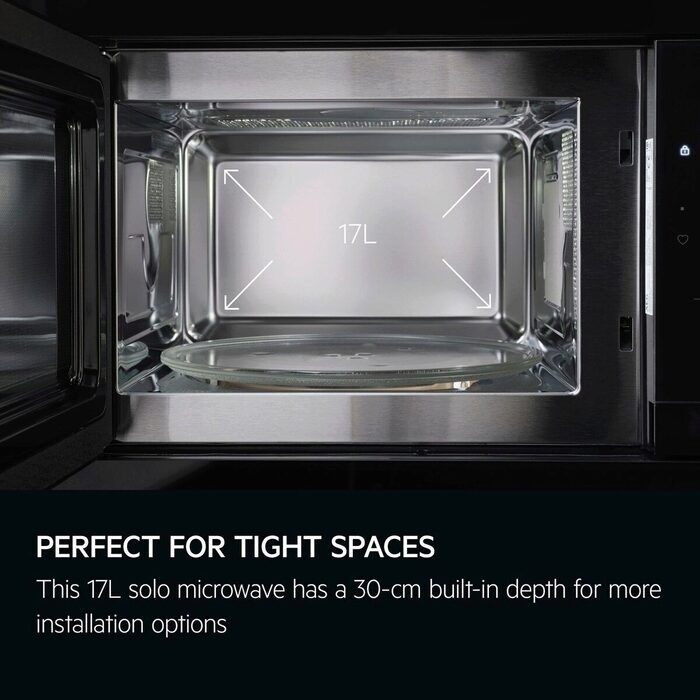 This 17L solo microwave has only a 30 cm built in depth. This means it can be installed in many positions, even in kitchens with slim wall-hanging cabinets.
