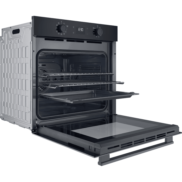 Transform your kitchen with this Hotpoint Class 2 oven, which blends advanced technology and refined design for an enhanced cooking experience. Featuring a sleek black finish and flush dials for smooth interaction, this oven offers 8 cooking functions to help you achieve flawless meals every time. Thanks to Multiflow technology, heat is evenly distributed throughout the spacious 71L cavity so you can cook a complete family meal on 3 levels simultaneously without any flavour transfer, saving you both energy and time*.