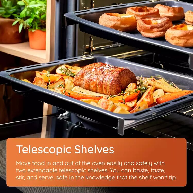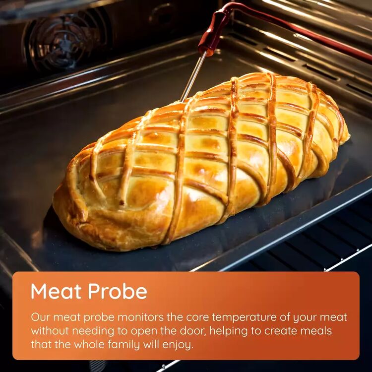 And for the artisan in you, the Pizza function quickly reaches a high temperature of 310°C for restaurant-style results in just 10 minutes***. It also comes with a handy meat probe that monitors the core temperature of your meat without you needing to open the oven door, resulting in perfectly cooked, tender joints of meat the whole family will love. Cooking has never been so effortless. MyMenu automatically selects the optimal settings for 60 delicious recipes including air-fried dishes, making it your perfect kitchen assistant when preparing meals. And for a final touch of luxury, 2 telescopic shelves and a soft-closing door enhances the oven°s premium feel.