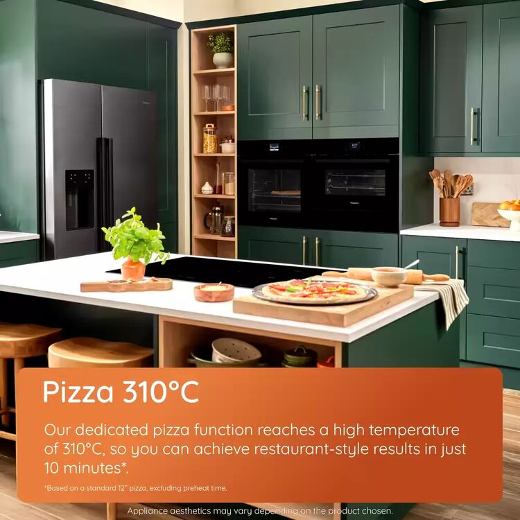 When it comes to cleaning, let Hotpoint do the hard work for you. DualClean offers two effortless cleaning options - choose Pyro Clean for a deep clean that burns away tough stains at high temperatures, or Diamond Clean to tackle everyday residue using steam. Not only that, but this oven has an A+ energy rating, so you can enjoy all these advanced features without worrying about your electricity bill. *Comparing cooking roasted potatoes, lasagna, tart and chicken pieces on 4 levels simultaneously vs cooking the same dishes in 4 separate runs (internal report). **Based on a standard 12° pizza, excluding preheat time. ***Based on external Certified Laboratory test results. Comparison between frozen french fries cooked with Air Fry function without oil addition vs deep oil frying methods (Deep Fryer SDA or cooktop Pan Frying). Different results obtained with Air Fry feature depending on the kind of food and oil addition.