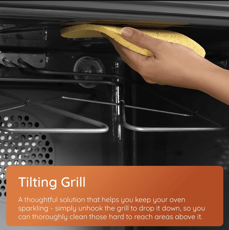There's also a handy programmable timer that allows you to set the cooking duration or delay the start, ensuring your meals are ready when you are. When it comes to cleaning, let Hotpoint do the hard work for you. Catalytic Clean is a self-cleaning system that uses special oven panels which catch grease and fat splatters, burning them off while you cook so any residue can be wiped away. You can also easily unhook the Tilting Grill and drop it down for hassle-free cleaning.
