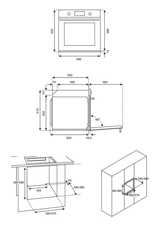 The soft open-and-close door with metal or metal titanium handle is easy to use and the cool touch glass is quadruple-glazed for safety and efficiency. Pyrolytic cleaning is based on high-temperature cleaning and sterilising without detergents to leave your oven sparkling clean hygienic. Finished in stainless steel.