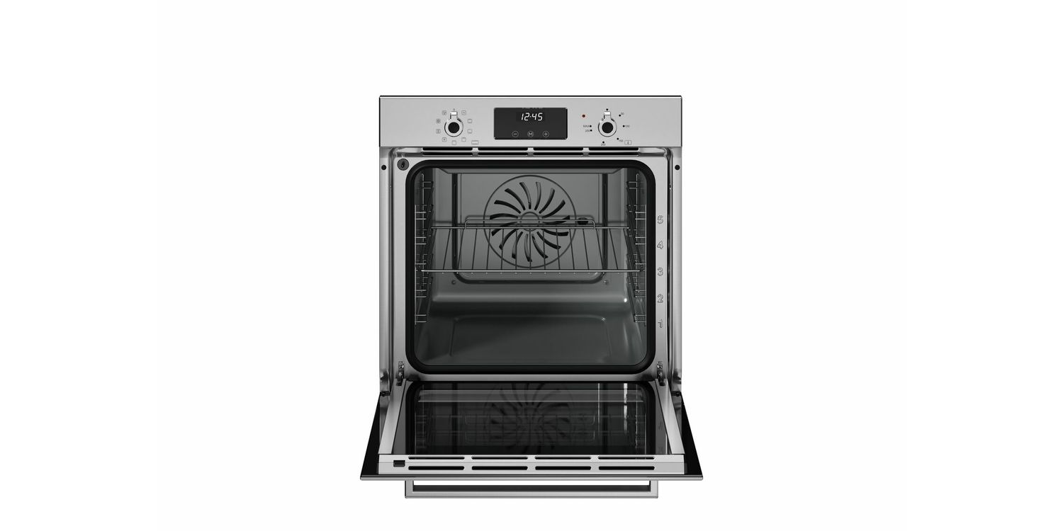 The infrared grill gives powerful searing and grilling over a large surface area. The oven is easy to control and monitor with metal knobs and a clear LED display. The soft opening door with metal handle is easy to use and the door is double-glazed for safety and efficiency. Available in Stainless Steel.
