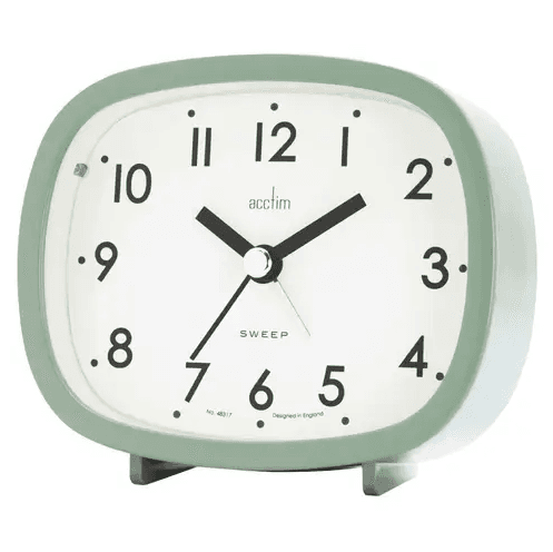 The clock features alarm with snooze, light and a non-ticking sweep seconds hand to ensure you won’t be disturbed as you sleep.