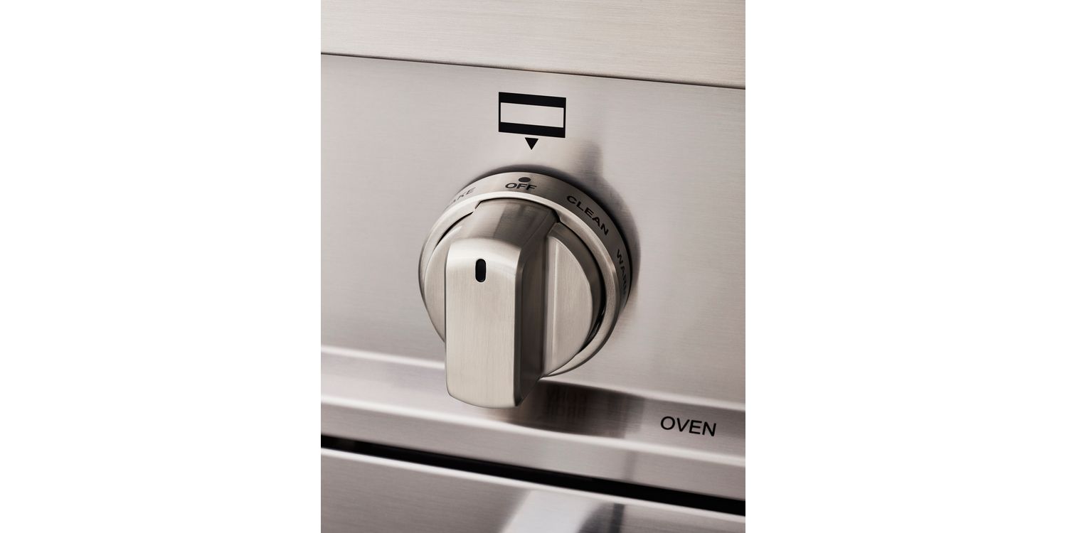 Designed to recall the style of commercial kitchens, the traditional, large round metal knobs are satisfying to the touch and intuitive to use – They are designed to make it clear whether they are on or off at a glance.