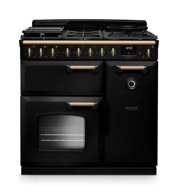Indulge in timeless elegance with the Classic Deluxe range cooker. Preserving the charm of the Classic bakers-style windows and bevelled doors, the Classic Deluxe offers an enhanced cooking experience – from the multifunction oven and Handyrack to the telescopic shelves. Personalise the characterful design with a choice of eight colours, including matt Charcoal Black and pastel Heather, as well as two complementary trim options: Chrome and Antique Brass.