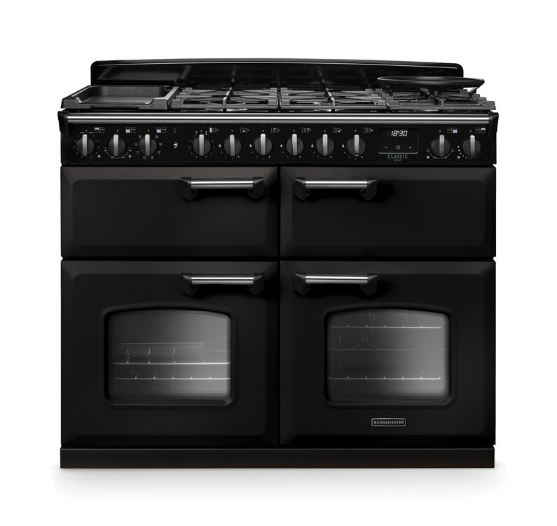 RANGEMASTER CLDLB110DFPCBL/CM1 Classic Deluxe 110cm BC Dual Fuel Charcoal Black/Chrome
