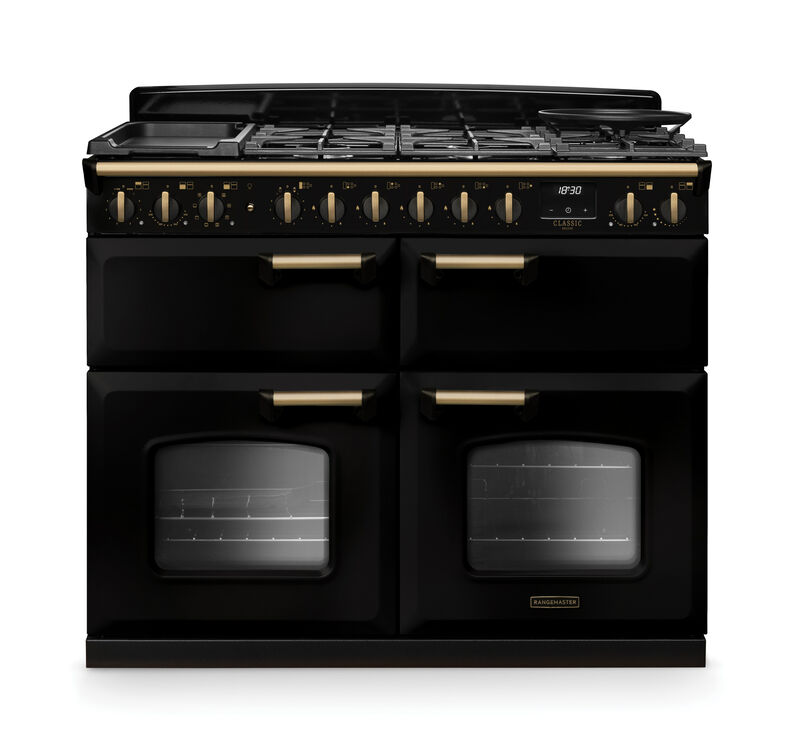 RANGEMASTER CLDLB110DFPGBL/AB1 Classic Deluxe 110cm BC Dual Fuel Black/Antique Brass