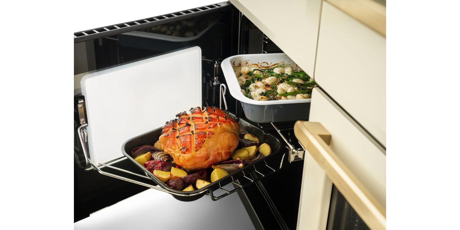 The Estel Deluxe range cooker embodies a classic and timeless aesthetic, blending retro and traditional elements with clean geometric lines and signature chamfered edges. Its design is inspired by utility and durability, offering a practical yet stylish option for those who value timeless functionality. The unique control dials and handles feature a chunky yet ergonomic design that enhances the nostalgic look, perfectly suited to traditional and modern kitchen design in a choice of eight colours, from pastel hues to classic neutral shades.