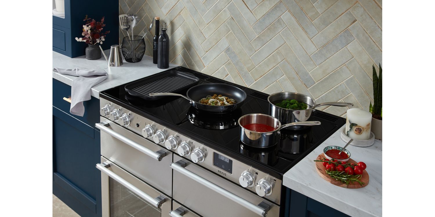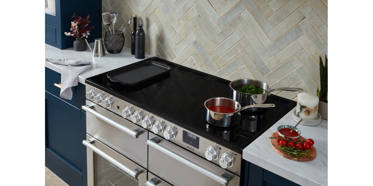 A masterpiece of modern design, the Nexus is for those who appreciate the finer details. Diamond-turned aluminium rotary controls are as tactile as they are visually striking, and sleek satin-finished handles with chrome accents exude a sense of luxury. In a choice of timeless, monochromatic colours the Nexus confidently flourishes from statement appliance to sous chef for hosting family gatherings and preparing five-course feasts. The Nexus is more than a range cooker; it is a statement of refined taste and culinary prowess.