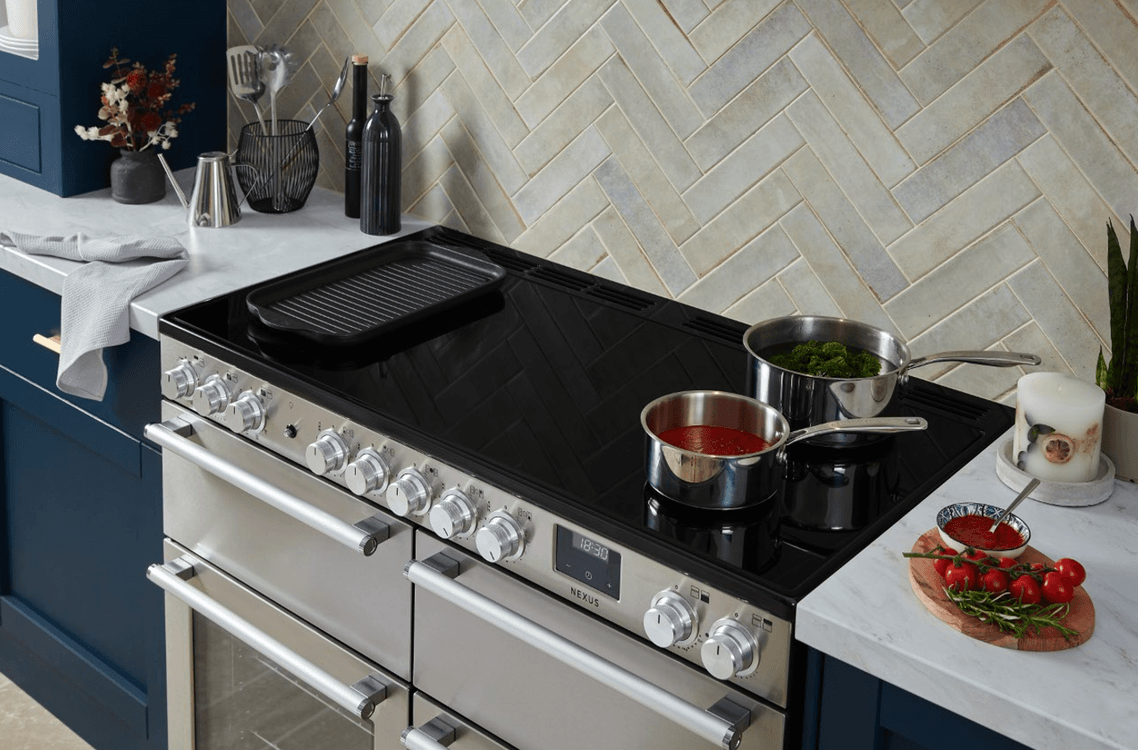 A masterpiece of modern design, the Nexus is for those who appreciate the finer details. Diamond-turned aluminium rotary controls are as tactile as they are visually striking, and sleek satin-finished handles with chrome accents exude a sense of luxury. In a choice of timeless, monochromatic colours the Nexus confidently flourishes from statement appliance to sous chef for hosting family gatherings and preparing five-course feasts. The Nexus is more than a range cooker; it is a statement of refined taste and culinary prowess.