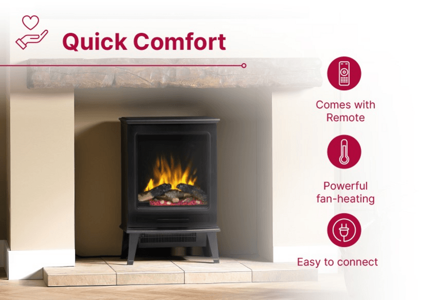 Step into cosy warmth and the mesmerising glow of the Fernshaw freestanding electric stove. It's Optiflame flames create a lifelike, inviting atmosphere that enchants any room. Effortless to use, this classic yet sophisticated stove combines elegance with modern features, bringing comforting warmth and a captivating, cosy ambience to your home all year round.