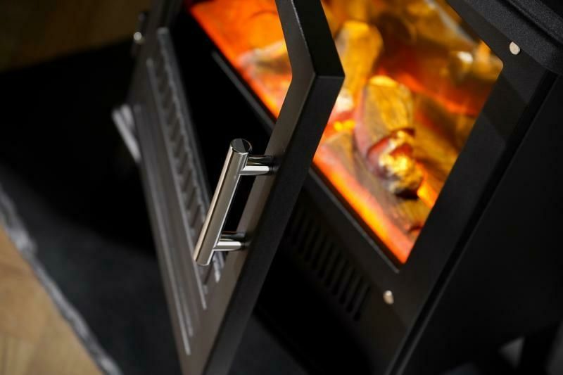 A compact, classic freestanding electric stove with Optiflame effect.  With an opening door and chrome details this stove really looks the part.