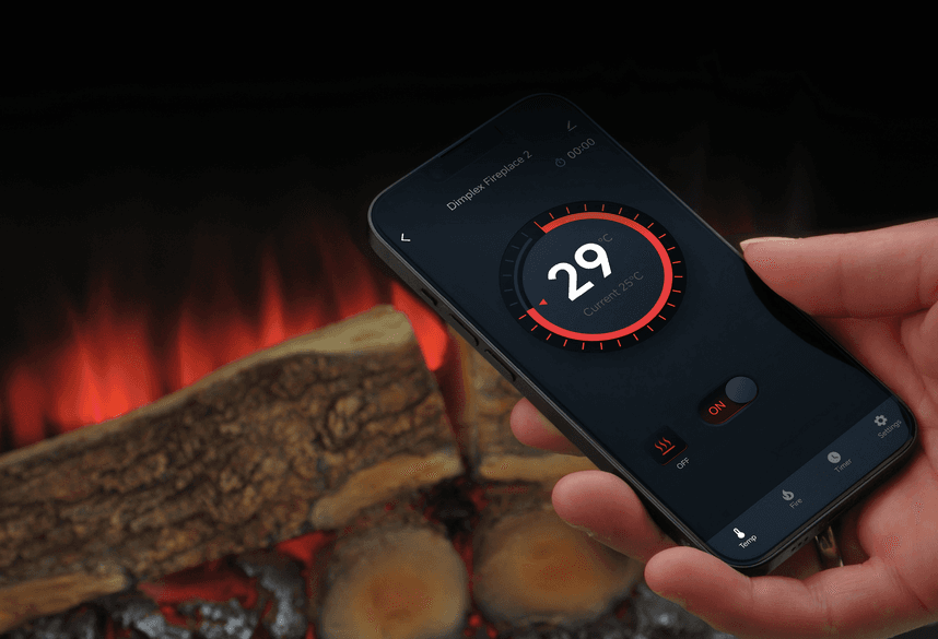 You can operate the fireplace directly from the unit, via the remote control, or with the user-friendly Glen Dimplex Connect app, which also allows you to set the sleep timer and 7-day programmable schedule.