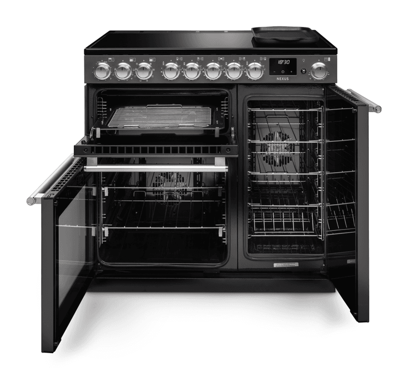 A masterpiece of modern design, the Nexus is for those who appreciate the finer details. Diamond-turned aluminium rotary controls are as tactile as they are visually striking, and sleek satin-finished handles with chrome accents exude a sense of luxury. In a choice of timeless, monochromatic colours the Nexus confidently flourishes from statement appliance to sous chef for hosting family gatherings and preparing five-course feasts. The Nexus is more than a range cooker; it is a statement of refined taste and culinary prowess.
