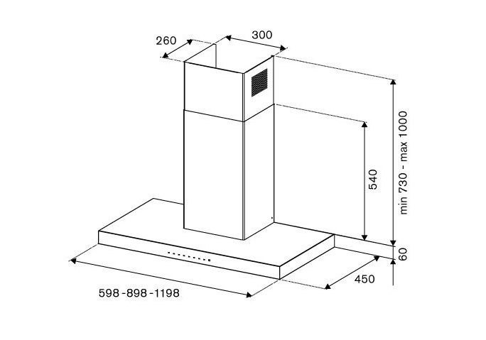 Electronic controls with LED display make it simple to adjust and the bright LED lights make it easy to see what you are doing on the hob. The powerful motor extracts 750 m3h max and is rated A+ energy class.