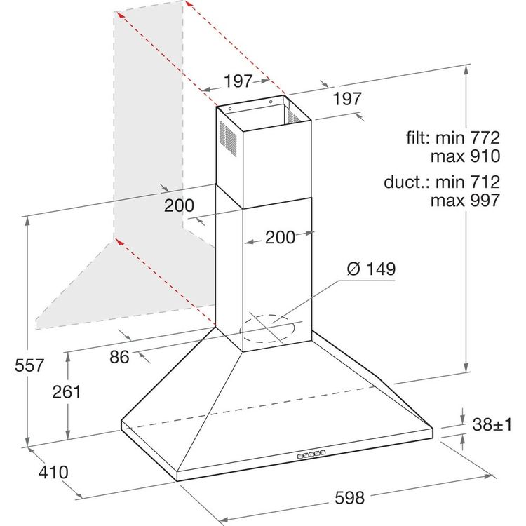 This Hotpoint wall mounted Cooker Hood features: less than 60cm wide appliance. An outstanding cooker extractor fan, ensuring a fresh, grease-free cooking environment. New design ensuring extra silent performance. LED lights for ideal lighting. Dishwasher-safe, washable aluminium grease filters.
