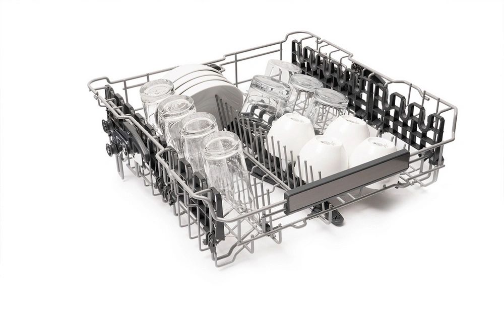 The flexible upper basket means you can fit in larger pots and pans. Using the three different height levels, you can create space for larger items or tall glasses. It’s easily adjustable too, even when the basket is full. There are also fully foldable spikes in the upper basket and half of the spikes are foldable in the lower basket for complete flexibility. Plus, the slidable third rack is ideal for cutlery and smaller items.