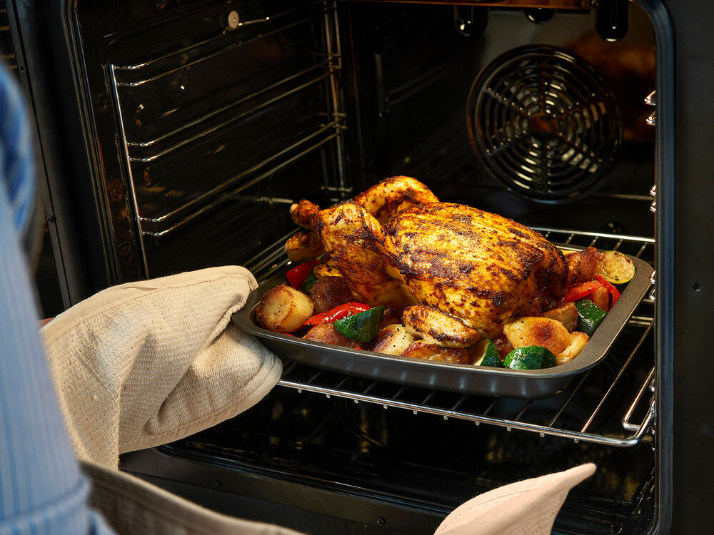 Turn up the heat and fill up your full-width pan - with a detachable handle and variety of racks as standard.