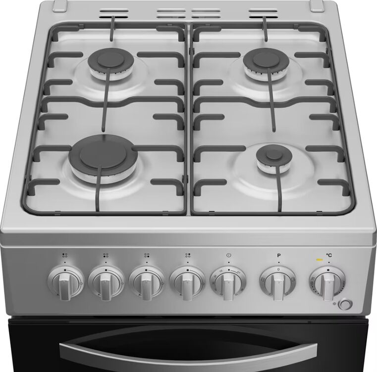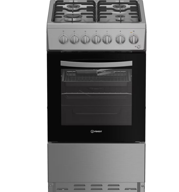 Enjoy making delicious dishes for the whole family with this Indesit freestanding cooker. Finished in stainless steel, it brings a stylish yet timeless touch to your kitchen. This 50cm cooker is split between a 60L main oven and a top grill compartment, giving you plenty of flexibility to cook all kinds of meals. Plus, the oven light lets you check on your food without opening the door, while the cooker's display can be used as a timer to help you stay focused and avoid distractions. The gas hob lights up instantly at the press of a button with Auto Ignition, and the sturdy enamel supports keep your pans stable for hassle-free cooking. With an impressive A energy rating, this cooker is as efficient as it is easy to use - perfect for everyday meals.