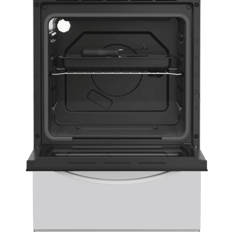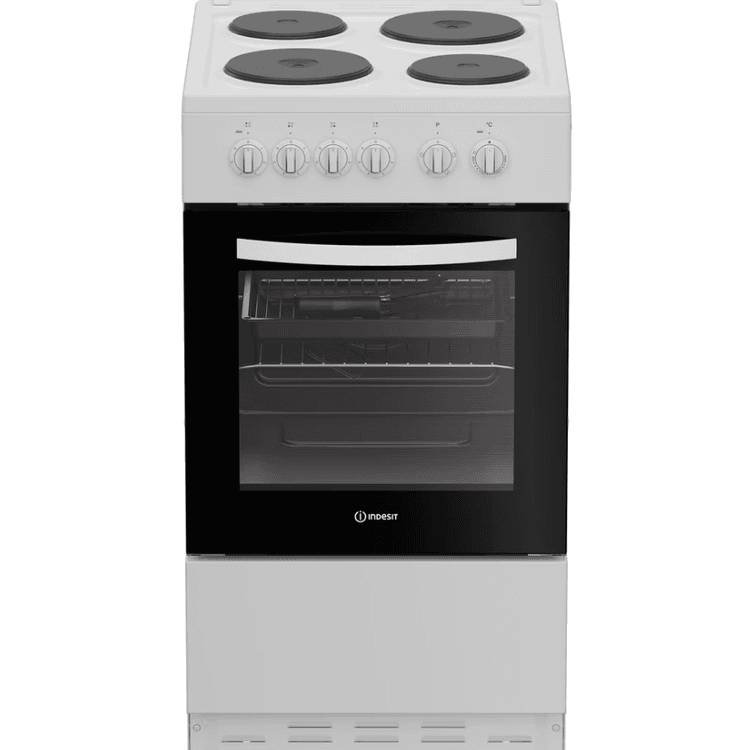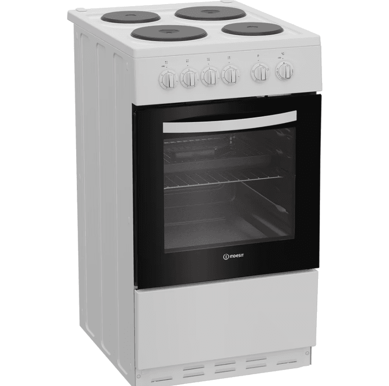 Enjoy making delicious dishes for the whole family with this Indesit freestanding cooker. Finished in classic white, it brings a stylish yet timeless touch to your kitchen. This 50cm cooker has a 60L oven, giving you plenty of space to cook all kinds of meals. Plus, the oven light lets you check on your food without opening the door. The solid plate hob features four electric heated zones in different sizes providing plenty of space for every pan, making it easy to cook anything from a cosy meal to a family feast. With an impressive A energy rating, this cooker is as efficient as it is easy to use - perfect for everyday meals.