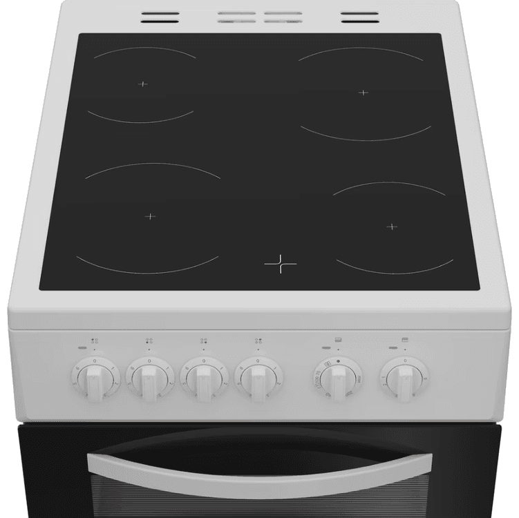 Plus, the oven light lets you check on your food without opening the door. The ceramic hob features four different-sized zones and adjustable power levels, so you can always find the perfect heat for your dish while saving energy. With an impressive A energy rating, this cooker is as efficient as it is easy to use - perfect for everyday meals.