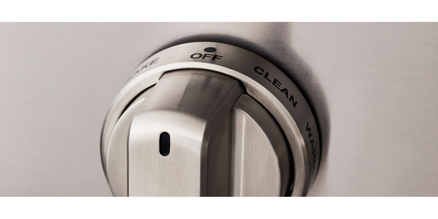 Designed to recall the style of commercial kitchens, the traditional, large round metal knobs are satisfying to the touch and intuitive to use – They are designed to make it clear whether they are on or off at a glance.
