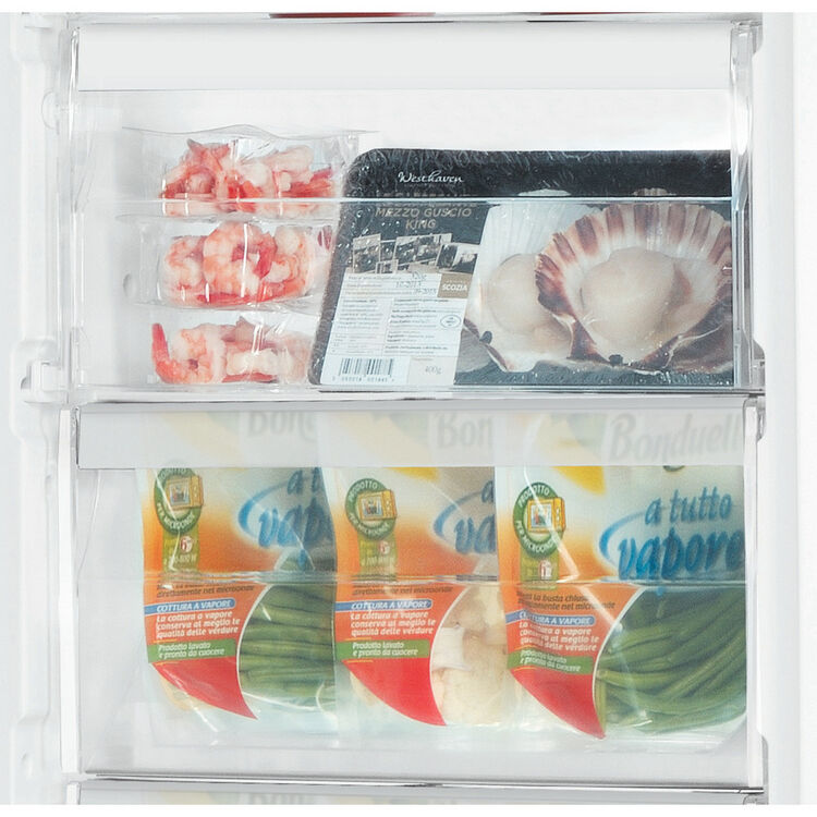 This Hotpoint freestanding upright tall Freezer features: no Frost, frost free technology, that reduces the humidity inside the freezer, effectively preventing ice build-up.