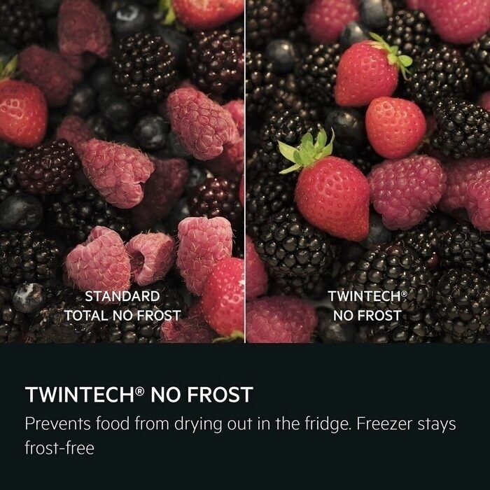 TwinTech® No Frost has an advanced dual cooling system for the fridge and freezer. This technology ensures the freezer stays frost-free and the fridge humidity optimal, preventing the food from drying out.