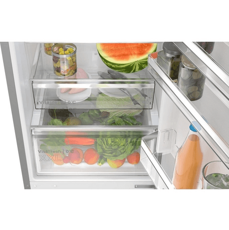 The Bosch KGN392LAGG fridge freezer is the perfect solution for families who value convenience and quality. Designed to hold a large variety of fresh and frozen foods, it features advanced VitaFresh XXL technology, ensuring that your groceries retain their freshness for longer. Its sleek stainless steel finish adds a touch of modern elegance to your kitchen while providing durability.