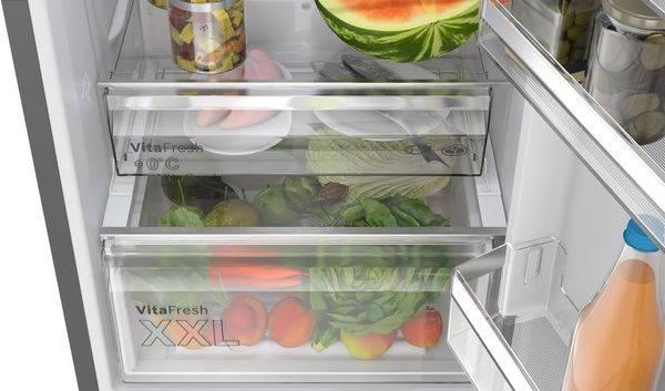 The spacious VitaFresh XXL Pro 0°C system offers the ideal storage environment for your fresh food thanks to climate control and 0°C technology. You’ll find two drawers, one for fish and one for meat, with a temperature regulating slide which lets you lower the temperature up to 4˚C lower than the rest of the fridge. This means you can store meat and fish at a cooler temperature, while your fruit and vegetables are looked after in the climate-controlled drawer for maximum freshness, helping to keep them fresh for longer.