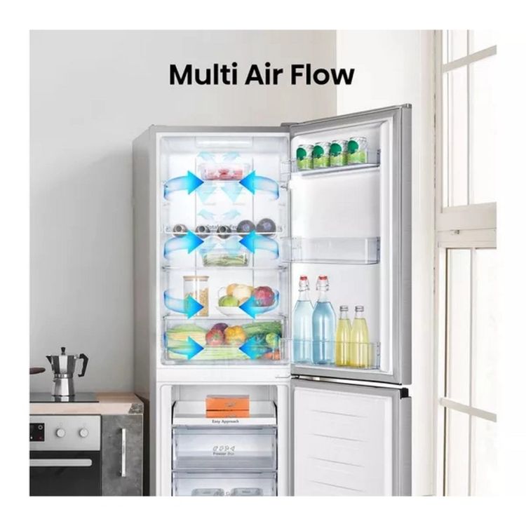 Perfect for households needing efficient and effortless food storage, it provides four spacious freezer drawers for organised storage and fan cooling to maintain consistent temperatures throughout the fridge. An easy tray adds versatile storage options for your convenience. This fridge freezer combines user-friendly features with low maintenance, making it an excellent choice for busy lifestyles where reliability and freshness matter.