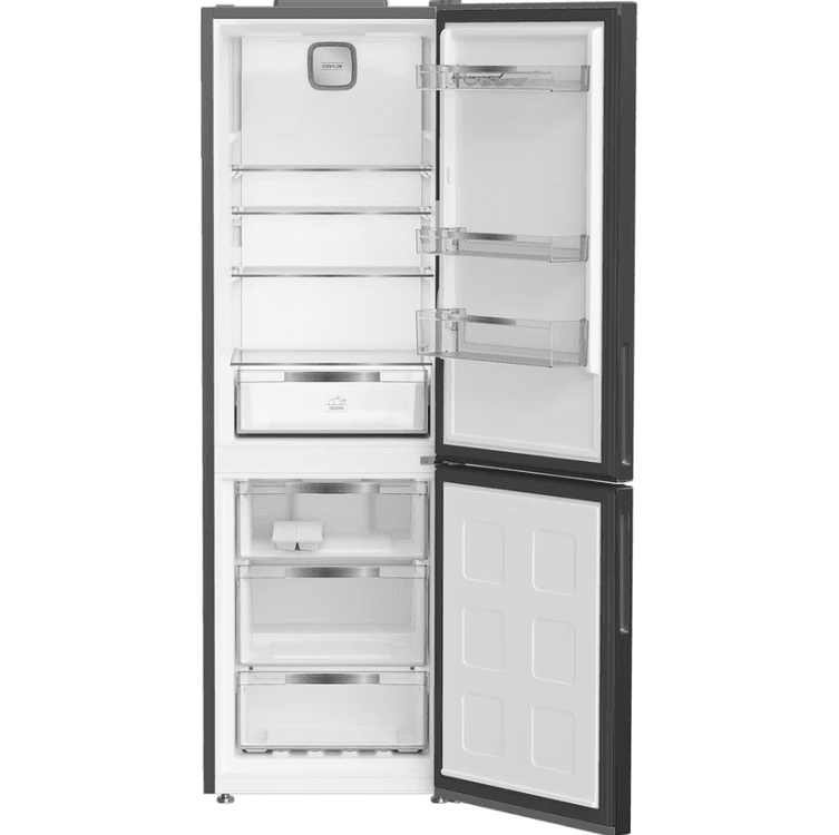 This Hotpoint freestanding 60/40 fridge freezer in sleek black features thoughtful technology that keeps your food fresh and prevents waste. With a generous capacity of 316L, it provides ample space for 17 shopping bags, so you can easily fit all your groceries in. The touch display means you can refrigerate your food with precision by controlling your appliance at the touch of your fingertips. Dual No Frost technology is our best solution to keep your fridge and freezer frost-free. Two independent evaporators circulate air around both the fridge and freezer so ice and moisture can't build up, meaning you won't be left with the chore of defrosting your appliance ever again. Inside you'll find a dedicated Fresh Zone drawer, which maintains the correct temperature for crisp salad and long-lasting vegetables.